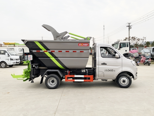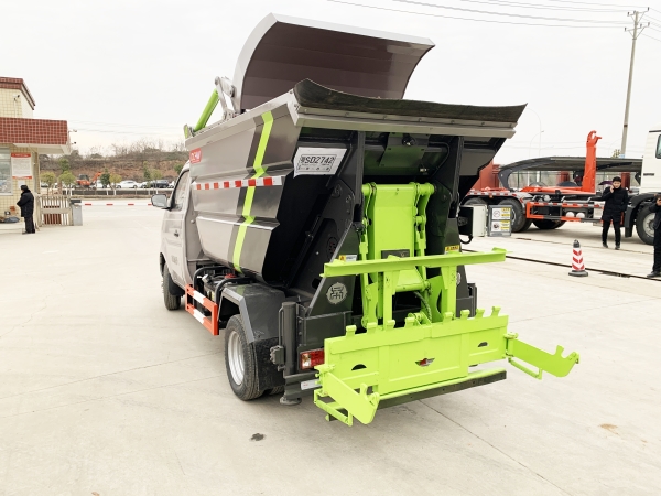 自裝卸式垃圾車在底盤的基礎(chǔ)上,加裝垃圾箱體、連接附件、防護(hù)欄及液壓系統(tǒng)等裝置。具有操作安全、使用性能穩(wěn)定、返修率低、售后服務(wù)及時(shí)周到等特點(diǎn)。本產(chǎn)品主要用于收集與轉(zhuǎn)運(yùn)城市住宅小區(qū)、鄉(xiāng)鎮(zhèn)街道等產(chǎn)生的生活垃圾。整車小巧靈活,行動(dòng)方便,適應(yīng)人流密集的商業(yè)區(qū)域和道路交通情況較差的城鄉(xiāng)地區(qū)。本車配有后掛桶進(jìn)料機(jī)構(gòu),在翻桶處操作,可與120L/240L/660L標(biāo)準(zhǔn)塑料桶對(duì)接。整車具有自卸功能,卸料方便。結(jié)構(gòu)結(jié)實(shí)耐腐 船型箱體結(jié)構(gòu)實(shí)現(xiàn)100%無泄漏;刮板進(jìn)料+壓縮 壓縮效率高;高位舉升自卸結(jié)構(gòu),卸料干凈 對(duì)接方便;多功能翻桶進(jìn)料機(jī)構(gòu) 進(jìn)料快捷穩(wěn)定;液壓系統(tǒng)穩(wěn)定可靠;自動(dòng)化程度高,電液聯(lián)合控制。