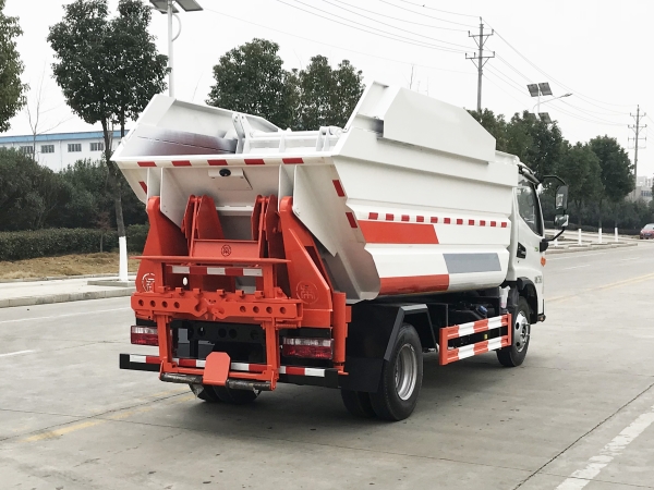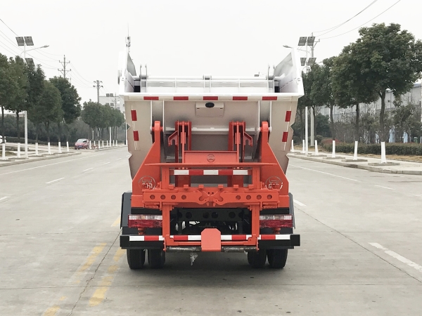 自裝卸式垃圾車在底盤的基礎(chǔ)上,加裝垃圾箱體、連接附件、防護(hù)欄及液壓系統(tǒng)等裝置。具有操作安全、使用性能穩(wěn)定、返修率低、售后服務(wù)及時周到等特點(diǎn)。本產(chǎn)品主要用于收集與轉(zhuǎn)運(yùn)城市住宅小區(qū)、鄉(xiāng)鎮(zhèn)街道等產(chǎn)生的生活垃圾。整車小巧靈活,行動方便,適應(yīng)人流密集的商業(yè)區(qū)域和道路交通情況較差的城鄉(xiāng)地區(qū)。本車配有后掛桶進(jìn)料機(jī)構(gòu),在翻桶處操作,可與120L/240L/660L標(biāo)準(zhǔn)塑料桶對接。整車具有自卸功能,卸料方便。結(jié)構(gòu)結(jié)實(shí)耐腐 船型箱體結(jié)構(gòu)實(shí)現(xiàn)100%無泄漏;刮板進(jìn)料+壓縮 壓縮效率高;高位舉升自卸結(jié)構(gòu),卸料干凈 對接方便;多功能翻桶進(jìn)料機(jī)構(gòu) 進(jìn)料快捷穩(wěn)定;液壓系統(tǒng)穩(wěn)定可靠;自動化程度高,電液聯(lián)合控制。