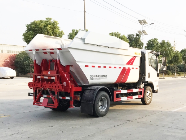 自裝卸式垃圾車在底盤的基礎(chǔ)上,加裝垃圾箱體、連接附件、防護(hù)欄及液壓系統(tǒng)等裝置。具有操作安全、使用性能穩(wěn)定、返修率低、售后服務(wù)及時(shí)周到等特點(diǎn)。本產(chǎn)品主要用于收集與轉(zhuǎn)運(yùn)城市住宅小區(qū)、鄉(xiāng)鎮(zhèn)街道等產(chǎn)生的生活垃圾。整車小巧靈活,行動(dòng)方便,適應(yīng)人流密集的商業(yè)區(qū)域和道路交通情況較差的城鄉(xiāng)地區(qū)。本車配有后掛桶進(jìn)料機(jī)構(gòu),在翻桶處操作,可與120L/240L/660L標(biāo)準(zhǔn)塑料桶對(duì)接。整車具有自卸功能,卸料方便。結(jié)構(gòu)結(jié)實(shí)耐腐 船型箱體結(jié)構(gòu)實(shí)現(xiàn)100%無(wú)泄漏;刮板進(jìn)料+壓縮 壓縮效率高;高位舉升自卸結(jié)構(gòu),卸料干凈 對(duì)接方便;多功能翻桶進(jìn)料機(jī)構(gòu) 進(jìn)料快捷穩(wěn)定;液壓系統(tǒng)穩(wěn)定可靠;自動(dòng)化程度高,電液聯(lián)合控制。