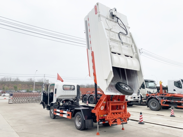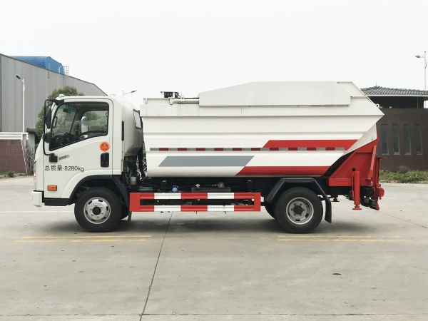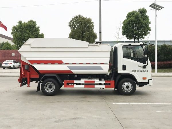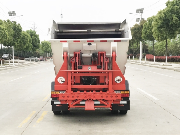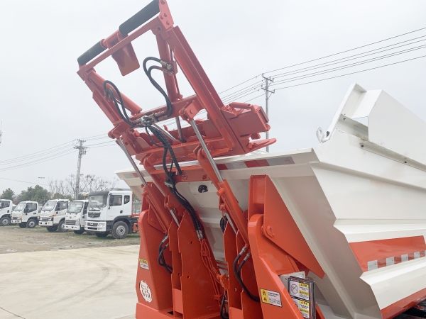自裝卸式垃圾車在底盤(pán)的基礎(chǔ)上,加裝垃圾箱體、連接附件、防護(hù)欄及液壓系統(tǒng)等裝置。具有操作安全、使用性能穩(wěn)定、返修率低、售后服務(wù)及時(shí)周到等特點(diǎn)。本產(chǎn)品主要用于收集與轉(zhuǎn)運(yùn)城市住宅小區(qū)、鄉(xiāng)鎮(zhèn)街道等產(chǎn)生的生活垃圾。整車小巧靈活,行動(dòng)方便,適應(yīng)人流密集的商業(yè)區(qū)域和道路交通情況較差的城鄉(xiāng)地區(qū)。本車配有后掛桶進(jìn)料機(jī)構(gòu),在翻桶處操作,可與120L/240L/660L標(biāo)準(zhǔn)塑料桶對(duì)接。整車具有自卸功能,卸料方便。結(jié)構(gòu)結(jié)實(shí)耐腐 船型箱體結(jié)構(gòu)實(shí)現(xiàn)100%無(wú)泄漏;刮板進(jìn)料+壓縮 壓縮效率高;高位舉升自卸結(jié)構(gòu),卸料干凈 對(duì)接方便;多功能翻桶進(jìn)料機(jī)構(gòu) 進(jìn)料快捷穩(wěn)定;液壓系統(tǒng)穩(wěn)定可靠;自動(dòng)化程度高,電液聯(lián)合控制。