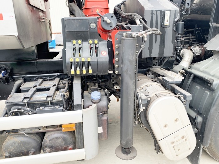 1.該車裝備有吊機、垃圾箱及液壓機構(gòu),用于將裝載有生活垃圾的深埋式垃圾桶自行將垃圾壓實裝入,轉(zhuǎn)運和卸料的功用,卸載方式為后卸式;選裝垃圾箱結(jié)構(gòu);僅采用底盤軸距(mm):5350+1350;2.選裝吊機型號分別為:HIAB 099/HIAB 112/PK10000/SPK10000/SQZ132,對應(yīng)吊機自重分別為(kg):1465,1520,1129,1356,2850,對應(yīng)吊機最大起升載荷分別為(kg):3250,3550,5580,5580,6300;3.側(cè)防護,后防護采用材料/Q235;連接方式為焊接加螺栓連接,后部防護裝置斷面尺寸(寬×高):60×120(mm),后部防護離地高度:490mm;4.發(fā)動機D6.7NS6B290、DDi75E350-60、DDi75E300-60對應(yīng)油耗值均為:32.0L/100km;5.該車裝ABS;ABS型號/生產(chǎn)廠家:3631010-C2000/東科克諾爾商用車制動系統(tǒng)(十堰)有限公司,ABS 8/東科克諾爾商用車制動系統(tǒng)(十堰)有限公司,4460046450/威伯科汽車控制系統(tǒng)(中國)有限公司,安裝帶有衛(wèi)星定位功能的行駛記錄儀;6.隨底盤選裝駕駛室前面罩;D6.7NS6B290發(fā)動機可選裝后背式排氣管;駕駛室前角擾流板為選裝件;前保險杠及前部燈具和后視鏡,駕駛室頂部中間三個裝飾燈為選裝件,前霧燈為選裝件,駕駛室前風(fēng)窗上部扶手為選裝件.可選裝ETC車載裝置.