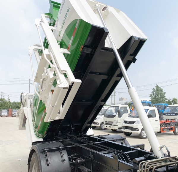 餐廚垃圾車是一種用于收集和運(yùn)輸生活垃圾、食品垃圾(泔水)及城市淤泥的專用車輛。采用側(cè)提桶上料方式進(jìn)行餐廚垃圾收集,采用自卸方式進(jìn)行卸料。先進(jìn)的弧形進(jìn)料口設(shè)計(jì)配上完美得液壓刮板系統(tǒng),使裝料更加快捷和順暢,尾門密封液壓鎖緊系統(tǒng),確保運(yùn)輸途中滴水不漏。 主要結(jié)構(gòu):汽車底盤、垃圾箱體、底架側(cè)提桶機(jī)構(gòu)、后門總成、液壓刮板系統(tǒng)、液壓系統(tǒng)和電控系統(tǒng)。液壓系統(tǒng)及電控系統(tǒng)由油泵、油缸、郵箱、電液閥、PLC單元、行程開關(guān)和開關(guān)等組成。同時(shí)本產(chǎn)品選配高壓清洗系統(tǒng),自動(dòng)稱重系統(tǒng)和衛(wèi)星定位互聯(lián)網(wǎng)系統(tǒng),自帶水箱,可以在現(xiàn)場(chǎng)對(duì)本車及垃圾桶進(jìn)行沖洗。是城鎮(zhèn)餐廚垃圾收集運(yùn)輸?shù)睦硐牍ぞ摺?/div>