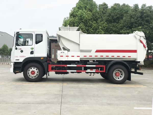 餐廚垃圾車是一種用于收集和運輸生活垃圾、食品垃圾(泔水)及城市淤泥的專用車輛。采用側(cè)提桶上料方式進(jìn)行餐廚垃圾收集,采用自卸方式進(jìn)行卸料。先進(jìn)的弧形進(jìn)料口設(shè)計配上完美得液壓刮板系統(tǒng),使裝料更加快捷和順暢,尾門密封液壓鎖緊系統(tǒng),確保運輸途中滴水不漏。 主要結(jié)構(gòu):汽車底盤、垃圾箱體、底架側(cè)提桶機(jī)構(gòu)、后門總成、液壓刮板系統(tǒng)、液壓系統(tǒng)和電控系統(tǒng)。液壓系統(tǒng)及電控系統(tǒng)由油泵、油缸、郵箱、電液閥、PLC單元、行程開關(guān)和開關(guān)等組成。同時本產(chǎn)品選配高壓清洗系統(tǒng),自動稱重系統(tǒng)和衛(wèi)星定位互聯(lián)網(wǎng)系統(tǒng),自帶水箱,可以在現(xiàn)場對本車及垃圾桶進(jìn)行沖洗。是城鎮(zhèn)餐廚垃圾收集運輸?shù)睦硐牍ぞ摺?/div>
