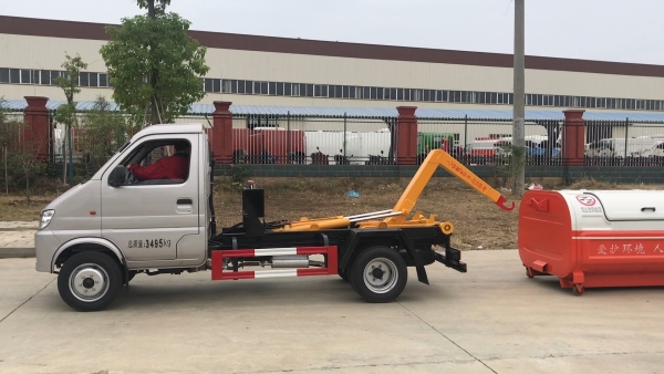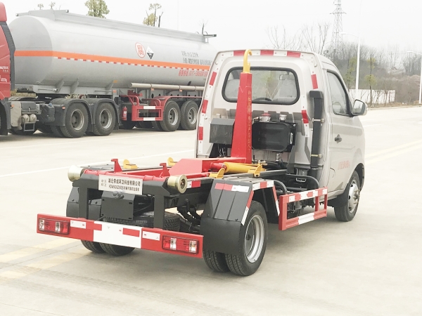 車廂可卸載式垃圾車,又稱勾臂式垃圾車、拉臂式垃圾車。該車廣泛適用與城市街道學校垃圾處理,可一車配備多個斗,各個垃圾點放置多個,帶自卸功能,液壓操作,方便傾倒。在平日里可將車載垃圾箱放置到各個垃圾收集站,待垃圾收集滿后,該車可直接開赴至垃圾站,通過液壓系統(tǒng)的操控,可將垃圾車后座上加裝的勾臂放下,掛住站內(nèi)垃圾箱前端的連接點,將垃圾箱拉至車體的后座上,此時即可啟動車輛,將垃圾運送至垃圾處理站內(nèi),進行自卸式傾倒。該車主要的優(yōu)點就是可一車配多斗,一輛車就可以維持數(shù)個垃圾收集站的運轉(zhuǎn),效率高,且箱體為密封式設計,不會造成二次污染。
