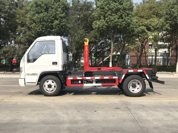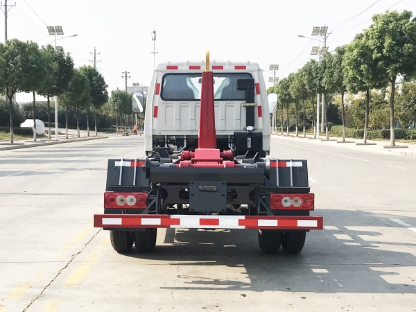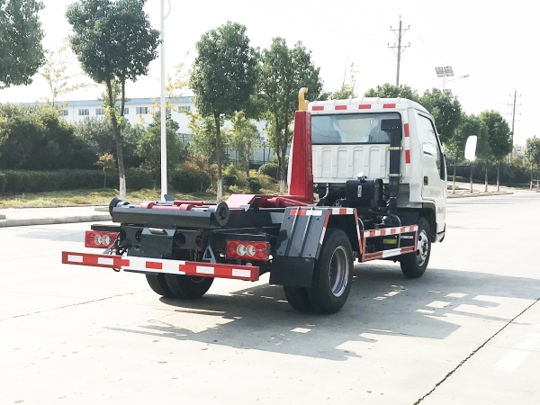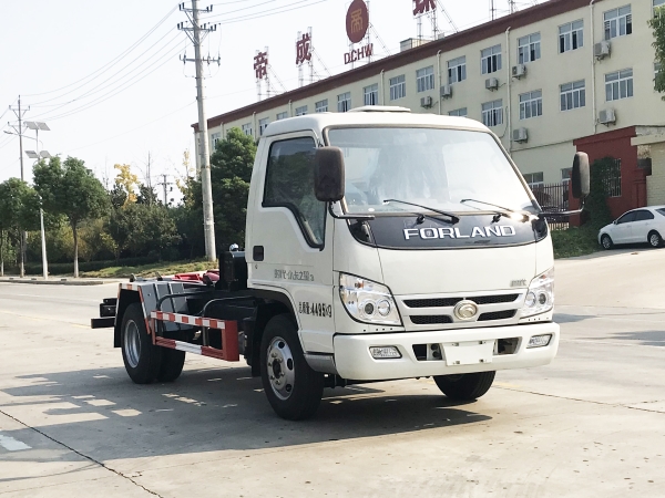 1.5~3T車廂可卸載式垃圾車,又稱勾臂式垃圾車、拉臂式垃圾車。該車廣泛適用與城市街道學(xué)校垃圾處理,可一車配備多個斗,各個垃圾點放置多個,帶自卸功能,液壓操作,方便傾倒。在平日里可將車載垃圾箱放置到各個垃圾收集站,待垃圾收集滿后,該車可直接開赴至垃圾站,通過液壓系統(tǒng)的操控,可將垃圾車后座上加裝的勾臂放下,掛住站內(nèi)垃圾箱前端的連接點,將垃圾箱拉至車體的后座上,此時即可啟動車輛,將垃圾運送至垃圾處理站內(nèi),進行自卸式傾倒。該車主要的優(yōu)點就是可一車配多斗,一輛車就可以維持數(shù)個垃圾收集站的運轉(zhuǎn),效率高,且箱體為密封式設(shè)計,不會造成二次污染。