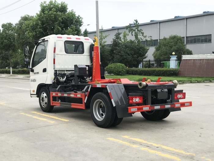 1.5~3T車廂可卸載式垃圾車,又稱勾臂式垃圾車、拉臂式垃圾車。該車廣泛適用與城市街道學(xué)校垃圾處理,可一車配備多個(gè)斗,各個(gè)垃圾點(diǎn)放置多個(gè),帶自卸功能,液壓操作,方便傾倒。在平日里可將車載垃圾箱放置到各個(gè)垃圾收集站,待垃圾收集滿后,該車可直接開赴至垃圾站,通過液壓系統(tǒng)的操控,可將垃圾車后座上加裝的勾臂放下,掛住站內(nèi)垃圾箱前端的連接點(diǎn),將垃圾箱拉至車體的后座上,此時(shí)即可啟動(dòng)車輛,將垃圾運(yùn)送至垃圾處理站內(nèi),進(jìn)行自卸式傾倒。該車主要的優(yōu)點(diǎn)就是可一車配多斗,一輛車就可以維持?jǐn)?shù)個(gè)垃圾收集站的運(yùn)轉(zhuǎn),效率高,且箱體為密封式設(shè)計(jì),不會(huì)造成二次污染。