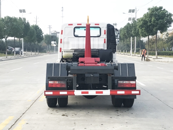 車廂可卸載式垃圾車,又稱勾臂式垃圾車、拉臂式垃圾車。該車廣泛適用與城市街道學(xué)校垃圾處理,可一車配備多個(gè)斗,各個(gè)垃圾點(diǎn)放置多個(gè),帶自卸功能,液壓操作,方便傾倒。在平日里可將車載垃圾箱放置到各個(gè)垃圾收集站,待垃圾收集滿后,該車可直接開赴至垃圾站,通過(guò)液壓系統(tǒng)的操控,可將垃圾車后座上加裝的勾臂放下,掛住站內(nèi)垃圾箱前端的連接點(diǎn),將垃圾箱拉至車體的后座上,此時(shí)即可啟動(dòng)車輛,將垃圾運(yùn)送至垃圾處理站內(nèi),進(jìn)行自卸式傾倒。該車主要的優(yōu)點(diǎn)就是可一車配多斗,一輛車就可以維持?jǐn)?shù)個(gè)垃圾收集站的運(yùn)轉(zhuǎn),效率高,且箱體為密封式設(shè)計(jì),不會(huì)造成二次污染。