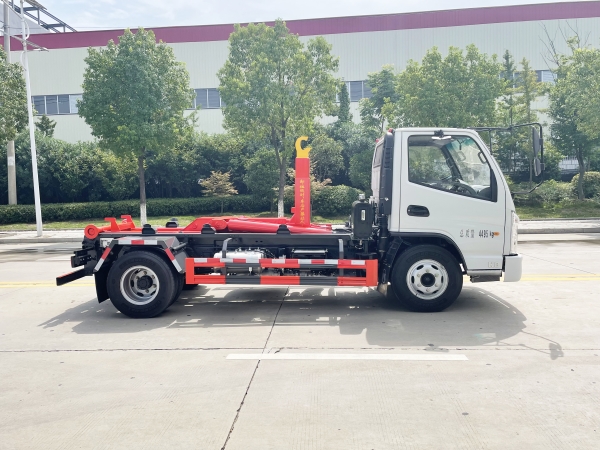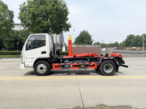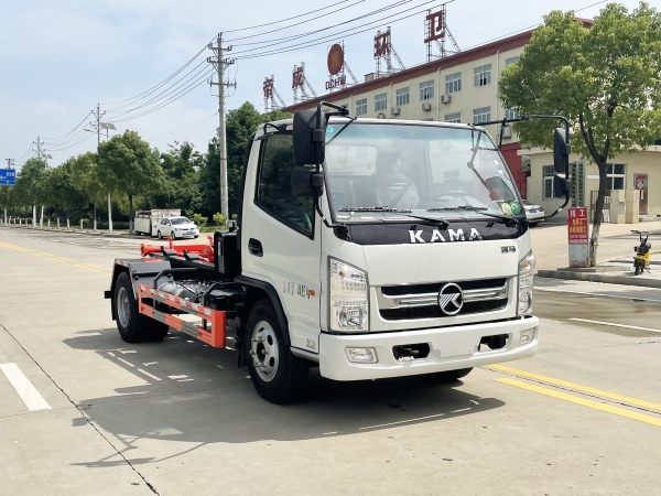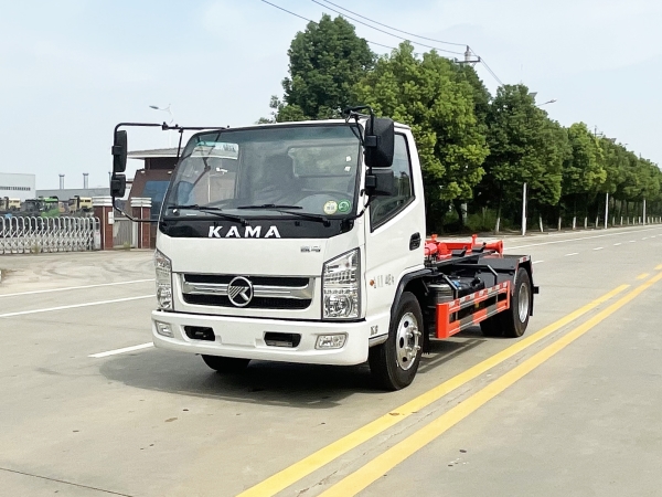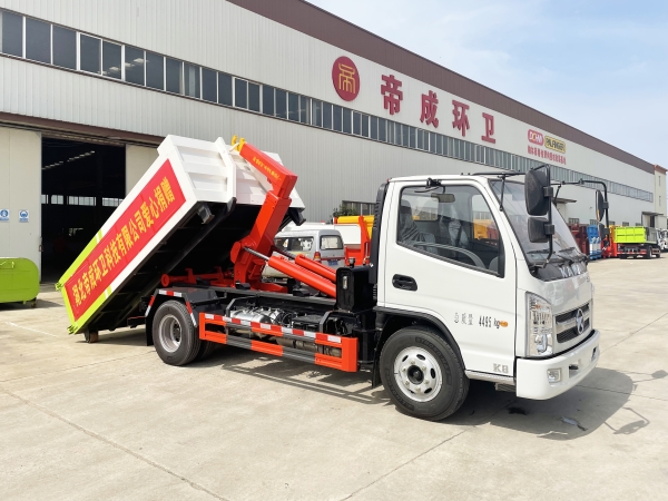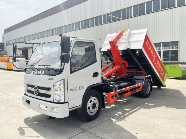 車廂可卸載式垃圾車,又稱勾臂式垃圾車、拉臂式垃圾車。該車廣泛適用與城市街道學(xué)校垃圾處理,可一車配備多個斗,各個垃圾點放置多個,帶自卸功能,液壓操作,方便傾倒。在平日里可將車載垃圾箱放置到各個垃圾收集站,待垃圾收集滿后,該車可直接開赴至垃圾站,通過液壓系統(tǒng)的操控,可將垃圾車后座上加裝的勾臂放下,掛住站內(nèi)垃圾箱前端的連接點,將垃圾箱拉至車體的后座上,此時即可啟動車輛,將垃圾運送至垃圾處理站內(nèi),進(jìn)行自卸式傾倒。該車主要的優(yōu)點就是可一車配多斗,一輛車就可以維持?jǐn)?shù)個垃圾收集站的運轉(zhuǎn),效率高,且箱體為密封式設(shè)計,不會造成二次污染。