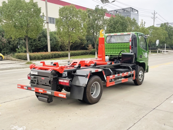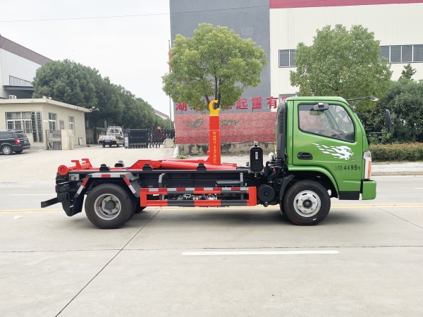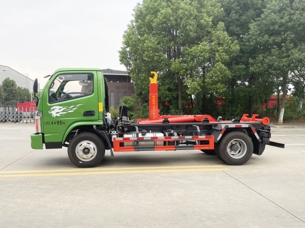 車廂可卸載式垃圾車,又稱勾臂式垃圾車、拉臂式垃圾車。該車廣泛適用與城市街道學(xué)校垃圾處理,可一車配備多個斗,各個垃圾點放置多個,帶自卸功能,液壓操作,方便傾倒。在平日里可將車載垃圾箱放置到各個垃圾收集站,待垃圾收集滿后,該車可直接開赴至垃圾站,通過液壓系統(tǒng)的操控,可將垃圾車后座上加裝的勾臂放下,掛住站內(nèi)垃圾箱前端的連接點,將垃圾箱拉至車體的后座上,此時即可啟動車輛,將垃圾運送至垃圾處理站內(nèi),進(jìn)行自卸式傾倒。該車主要的優(yōu)點就是可一車配多斗,一輛車就可以維持?jǐn)?shù)個垃圾收集站的運轉(zhuǎn),效率高,且箱體為密封式設(shè)計,不會造成二次污染。