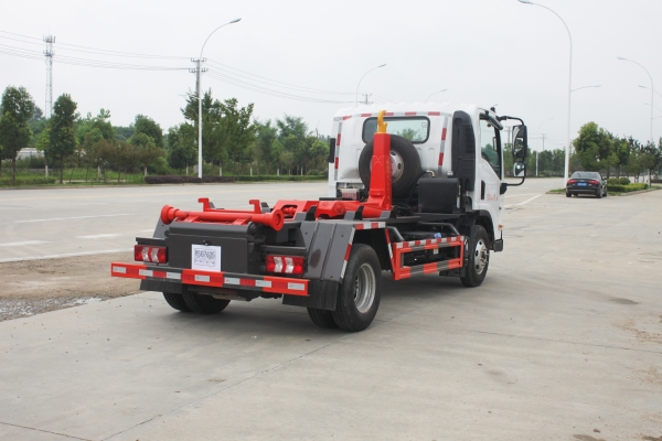 車廂可卸載式垃圾車,又稱勾臂式垃圾車、拉臂式垃圾車。該車廣泛適用與城市街道學校垃圾處理,可一車配備多個斗,各個垃圾點放置多個,帶自卸功能,液壓操作,方便傾倒。在平日里可將車載垃圾箱放置到各個垃圾收集站,待垃圾收集滿后,該車可直接開赴至垃圾站,通過液壓系統(tǒng)的操控,可將垃圾車后座上加裝的勾臂放下,掛住站內(nèi)垃圾箱前端的連接點,將垃圾箱拉至車體的后座上,此時即可啟動車輛,將垃圾運送至垃圾處理站內(nèi),進行自卸式傾倒。該車主要的優(yōu)點就是可一車配多斗,一輛車就可以維持數(shù)個垃圾收集站的運轉(zhuǎn),效率高,且箱體為密封式設計,不會造成二次污染。