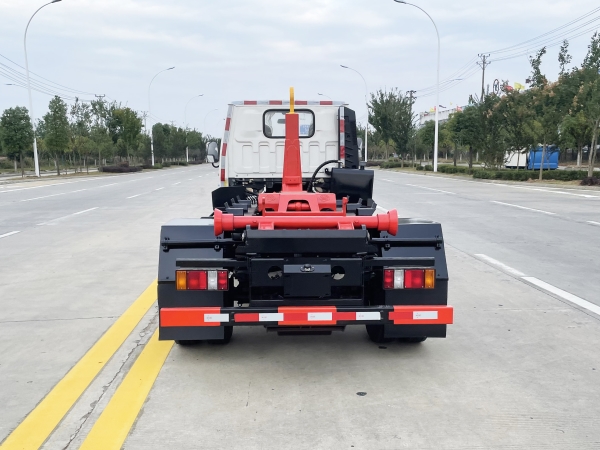 車廂可卸載式垃圾車,又稱勾臂式垃圾車、拉臂式垃圾車。該車廣泛適用與城市街道學(xué)校垃圾處理,可一車配備多個(gè)斗,各個(gè)垃圾點(diǎn)放置多個(gè),帶自卸功能,液壓操作,方便傾倒。在平日里可將車載垃圾箱放置到各個(gè)垃圾收集站,待垃圾收集滿后,該車可直接開赴至垃圾站,通過(guò)液壓系統(tǒng)的操控,可將垃圾車后座上加裝的勾臂放下,掛住站內(nèi)垃圾箱前端的連接點(diǎn),將垃圾箱拉至車體的后座上,此時(shí)即可啟動(dòng)車輛,將垃圾運(yùn)送至垃圾處理站內(nèi),進(jìn)行自卸式傾倒。該車主要的優(yōu)點(diǎn)就是可一車配多斗,一輛車就可以維持?jǐn)?shù)個(gè)垃圾收集站的運(yùn)轉(zhuǎn),效率高,且箱體為密封式設(shè)計(jì),不會(huì)造成二次污染。