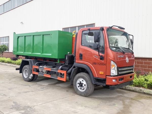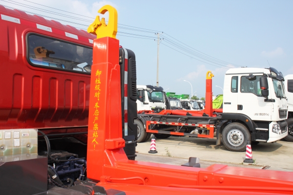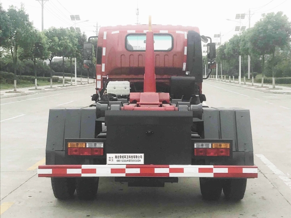 車廂可卸載式垃圾車,又稱勾臂式垃圾車、拉臂式垃圾車。該車廣泛適用與城市街道學(xué)校垃圾處理,可一車配備多個(gè)斗,各個(gè)垃圾點(diǎn)放置多個(gè),帶自卸功能,液壓操作,方便傾倒。在平日里可將車載垃圾箱放置到各個(gè)垃圾收集站,待垃圾收集滿后,該車可直接開赴至垃圾站,通過液壓系統(tǒng)的操控,可將垃圾車后座上加裝的勾臂放下,掛住站內(nèi)垃圾箱前端的連接點(diǎn),將垃圾箱拉至車體的后座上,此時(shí)即可啟動(dòng)車輛,將垃圾運(yùn)送至垃圾處理站內(nèi),進(jìn)行自卸式傾倒。該車主要的優(yōu)點(diǎn)就是可一車配多斗,一輛車就可以維持?jǐn)?shù)個(gè)垃圾收集站的運(yùn)轉(zhuǎn),效率高,且箱體為密封式設(shè)計(jì),不會(huì)造成二次污染。