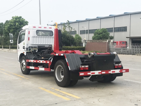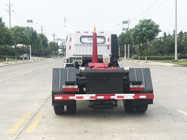 車廂可卸載式垃圾車,又稱勾臂式垃圾車、拉臂式垃圾車。該車廣泛適用與城市街道學(xué)校垃圾處理,可一車配備多個斗,各個垃圾點放置多個,帶自卸功能,液壓操作,方便傾倒。在平日里可將車載垃圾箱放置到各個垃圾收集站,待垃圾收集滿后,該車可直接開赴至垃圾站,通過液壓系統(tǒng)的操控,可將垃圾車后座上加裝的勾臂放下,掛住站內(nèi)垃圾箱前端的連接點,將垃圾箱拉至車體的后座上,此時即可啟動車輛,將垃圾運送至垃圾處理站內(nèi),進行自卸式傾倒。該車主要的優(yōu)點就是可一車配多斗,一輛車就可以維持?jǐn)?shù)個垃圾收集站的運轉(zhuǎn),效率高,且箱體為密封式設(shè)計,不會造成二次污染。