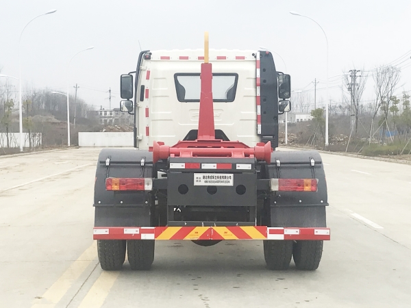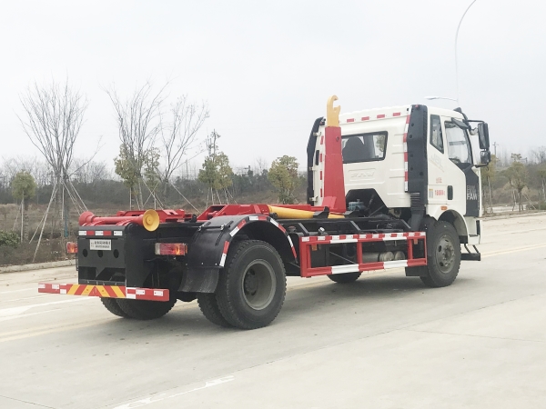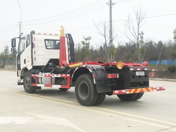車廂可卸載式垃圾車,又稱勾臂式垃圾車、拉臂式垃圾車。該車廣泛適用與城市街道學(xué)校垃圾處理,可一車配備多個(gè)斗,各個(gè)垃圾點(diǎn)放置多個(gè),帶自卸功能,液壓操作,方便傾倒。在平日里可將車載垃圾箱放置到各個(gè)垃圾收集站,待垃圾收集滿后,該車可直接開赴至垃圾站,通過液壓系統(tǒng)的操控,可將垃圾車后座上加裝的勾臂放下,掛住站內(nèi)垃圾箱前端的連接點(diǎn),將垃圾箱拉至車體的后座上,此時(shí)即可啟動(dòng)車輛,將垃圾運(yùn)送至垃圾處理站內(nèi),進(jìn)行自卸式傾倒。該車主要的優(yōu)點(diǎn)就是可一車配多斗,一輛車就可以維持?jǐn)?shù)個(gè)垃圾收集站的運(yùn)轉(zhuǎn),效率高,且箱體為密封式設(shè)計(jì),不會(huì)造成二次污染。