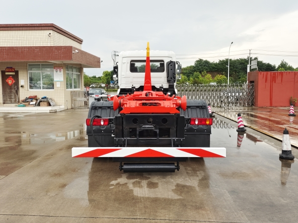 | 1.該車用于垃圾的收集清運(yùn),主要專用裝置為勾臂;2.選裝后部斜邊結(jié)構(gòu),選裝后部管接頭,選裝后部支腿結(jié)構(gòu),選裝不同勾臂結(jié)構(gòu),選裝備胎架,選裝液壓油箱位置,選裝控制盒位置;整車長(zhǎng)(mm)/軸距(mm)的對(duì)應(yīng)關(guān)系分別為:7300/4500,7500/4700;3.側(cè),后防護(hù)材料均采用Q235碳鋼,連接方式為焊接加螺栓連接,后部防護(hù)斷面尺寸(mm):120×60,離地高度470mm;4.隨底盤(pán)選裝D6.7NS6B230,B6.2NS6B210,B6.2NS6B230,DDi50E190-60,D4.5NS6B190,對(duì)應(yīng)的油耗值(L/100km)分別為:23.7,23.8,23.8,23.9,24.4;5.ABS型號(hào)/生產(chǎn)廠家:3631010-C2000/東科克諾爾商用車制動(dòng)系統(tǒng)(十堰)有限公司,ABS 8/東科克諾爾商用車制動(dòng)系統(tǒng)(十堰)有限公司, 4460046450/威伯科汽車控制系統(tǒng)(中國(guó))有限公司,J ABS/焦作博瑞克控制技術(shù)有限公司,安裝帶有衛(wèi)星定位功能的行駛記錄儀;6.隨底盤(pán)選裝高度不同的駕駛室;選裝不同部件布局;選裝前霧燈;選裝駕駛室頂部裝飾燈;選裝駕駛室前面罩;選裝前保險(xiǎn)杠及前部燈具,選裝后視鏡;選裝后部燈具;駕駛室前臉擾流罩為選裝件;駕駛室臥鋪側(cè)窗選裝裝飾板;選裝踏步結(jié)構(gòu);選裝后背式排氣管.該車型可選裝ETC車載裝置. | |||
