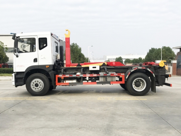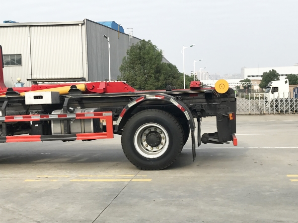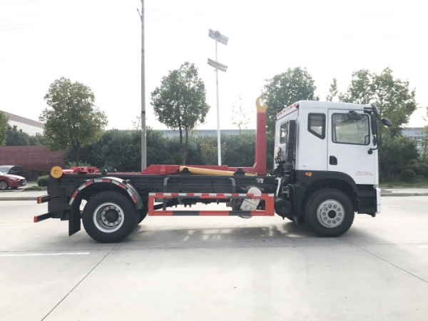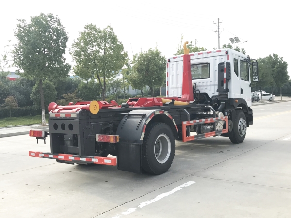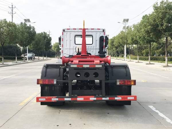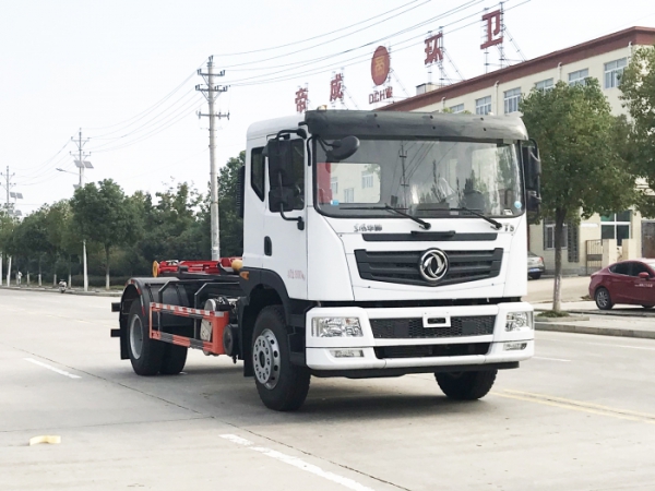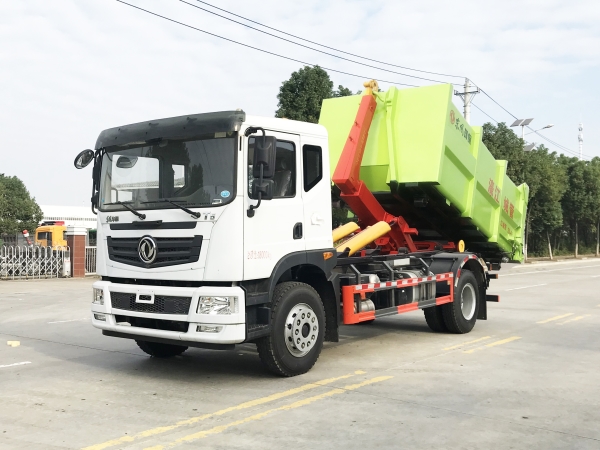車廂可卸載式垃圾車,又稱勾臂式垃圾車、拉臂式垃圾車。該車廣泛適用與城市街道學校垃圾處理,可一車配備多個斗,各個垃圾點放置多個,帶自卸功能,液壓操作,方便傾倒。在平日里可將車載垃圾箱放置到各個垃圾收集站,待垃圾收集滿后,該車可直接開赴至垃圾站,通過液壓系統(tǒng)的操控,可將垃圾車后座上加裝的勾臂放下,掛住站內(nèi)垃圾箱前端的連接點,將垃圾箱拉至車體的后座上,此時即可啟動車輛,將垃圾運送至垃圾處理站內(nèi),進行自卸式傾倒。該車主要的優(yōu)點就是可一車配多斗,一輛車就可以維持數(shù)個垃圾收集站的運轉(zhuǎn),效率高,且箱體為密封式設計,不會造成二次污染。
