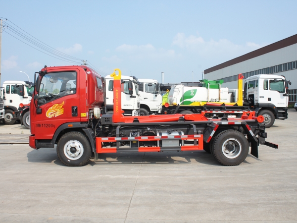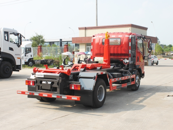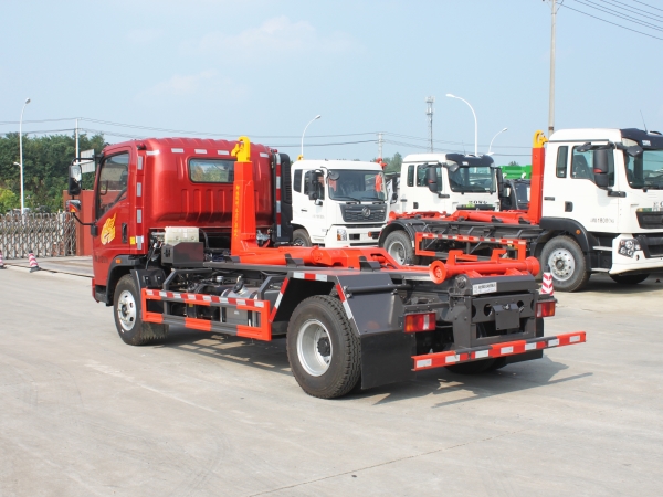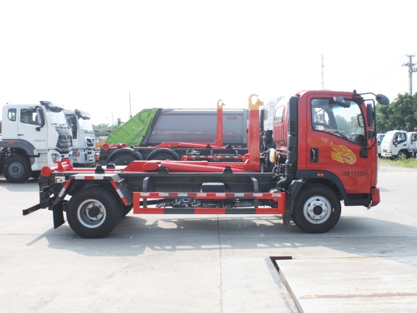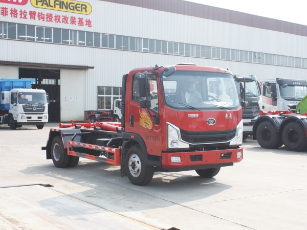 車廂可卸載式垃圾車,又稱勾臂式垃圾車、拉臂式垃圾車。該車廣泛適用與城市街道學(xué)校垃圾處理,可一車配備多個(gè)斗,各個(gè)垃圾點(diǎn)放置多個(gè),帶自卸功能,液壓操作,方便傾倒。在平日里可將車載垃圾箱放置到各個(gè)垃圾收集站,待垃圾收集滿后,該車可直接開赴至垃圾站,通過液壓系統(tǒng)的操控,可將垃圾車后座上加裝的勾臂放下,掛住站內(nèi)垃圾箱前端的連接點(diǎn),將垃圾箱拉至車體的后座上,此時(shí)即可啟動(dòng)車輛,將垃圾運(yùn)送至垃圾處理站內(nèi),進(jìn)行自卸式傾倒。該車主要的優(yōu)點(diǎn)就是可一車配多斗,一輛車就可以維持?jǐn)?shù)個(gè)垃圾收集站的運(yùn)轉(zhuǎn),效率高,且箱體為密封式設(shè)計(jì),不會造成二次污染。