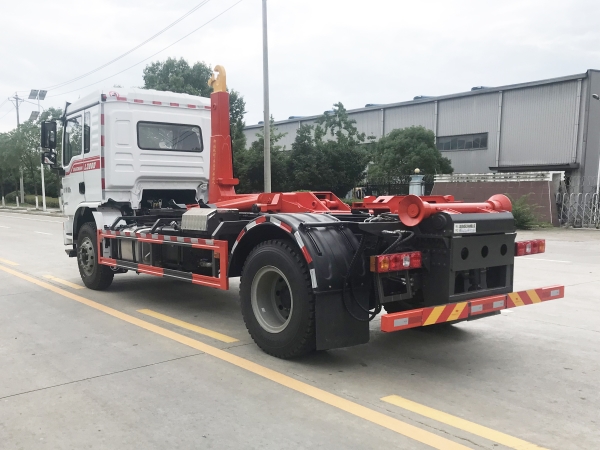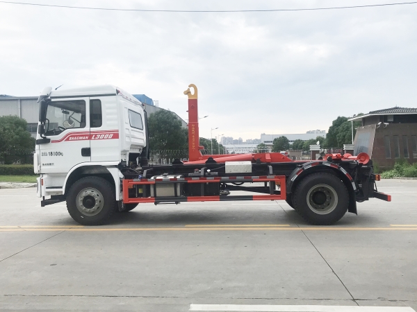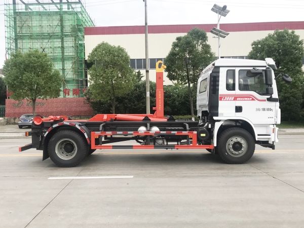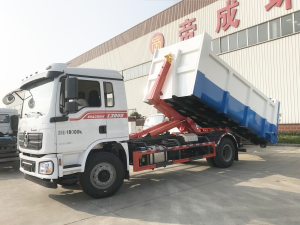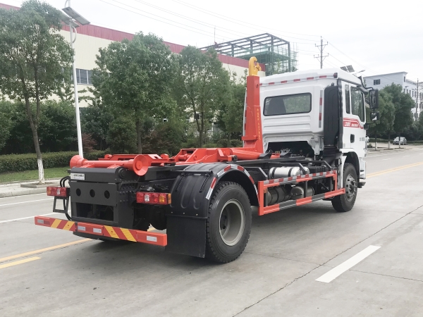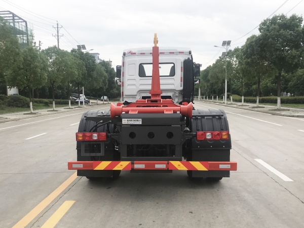 車廂可卸載式垃圾車,又稱勾臂式垃圾車、拉臂式垃圾車。該車廣泛適用與城市街道學(xué)校垃圾處理,可一車配備多個(gè)斗,各個(gè)垃圾點(diǎn)放置多個(gè),帶自卸功能,液壓操作,方便傾倒。在平日里可將車載垃圾箱放置到各個(gè)垃圾收集站,待垃圾收集滿后,該車可直接開赴至垃圾站,通過(guò)液壓系統(tǒng)的操控,可將垃圾車后座上加裝的勾臂放下,掛住站內(nèi)垃圾箱前端的連接點(diǎn),將垃圾箱拉至車體的后座上,此時(shí)即可啟動(dòng)車輛,將垃圾運(yùn)送至垃圾處理站內(nèi),進(jìn)行自卸式傾倒。該車主要的優(yōu)點(diǎn)就是可一車配多斗,一輛車就可以維持?jǐn)?shù)個(gè)垃圾收集站的運(yùn)轉(zhuǎn),效率高,且箱體為密封式設(shè)計(jì),不會(huì)造成二次污染。
