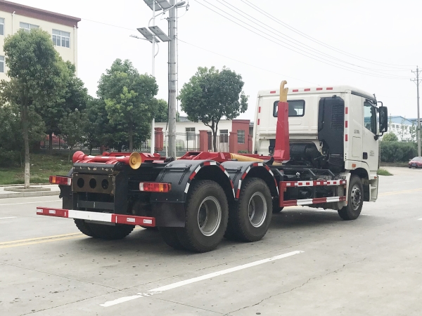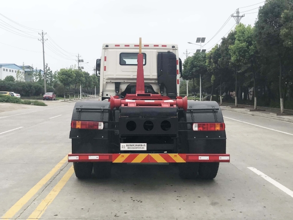 車廂可卸載式垃圾車,又稱勾臂式垃圾車、拉臂式垃圾車。該車廣泛適用與城市街道學(xué)校垃圾處理,可一車配備多個(gè)斗,各個(gè)垃圾點(diǎn)放置多個(gè),帶自卸功能,液壓操作,方便傾倒。在平日里可將車載垃圾箱放置到各個(gè)垃圾收集站,待垃圾收集滿后,該車可直接開赴至垃圾站,通過液壓系統(tǒng)的操控,可將垃圾車后座上加裝的勾臂放下,掛住站內(nèi)垃圾箱前端的連接點(diǎn),將垃圾箱拉至車體的后座上,此時(shí)即可啟動車輛,將垃圾運(yùn)送至垃圾處理站內(nèi),進(jìn)行自卸式傾倒。該車主要的優(yōu)點(diǎn)就是可一車配多斗,一輛車就可以維持?jǐn)?shù)個(gè)垃圾收集站的運(yùn)轉(zhuǎn),效率高,且箱體為密封式設(shè)計(jì),不會造成二次污染。
