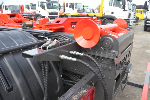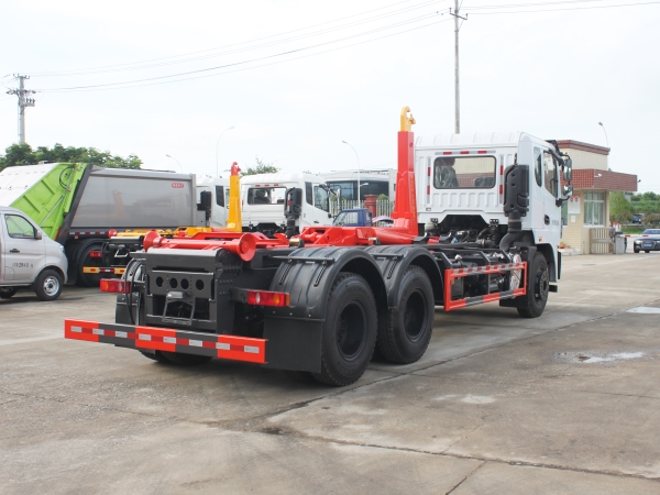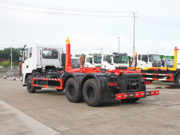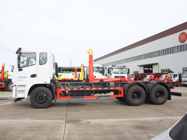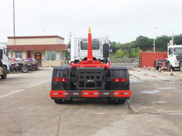車廂可卸載式垃圾車,又稱勾臂式垃圾車、拉臂式垃圾車。該車廣泛適用與城市街道學(xué)校垃圾處理,可一車配備多個斗,各個垃圾點放置多個,帶自卸功能,液壓操作,方便傾倒。在平日里可將車載垃圾箱放置到各個垃圾收集站,待垃圾收集滿后,該車可直接開赴至垃圾站,通過液壓系統(tǒng)的操控,可將垃圾車后座上加裝的勾臂放下,掛住站內(nèi)垃圾箱前端的連接點,將垃圾箱拉至車體的后座上,此時即可啟動車輛,將垃圾運送至垃圾處理站內(nèi),進行自卸式傾倒。該車主要的優(yōu)點就是可一車配多斗,一輛車就可以維持數(shù)個垃圾收集站的運轉(zhuǎn),效率高,且箱體為密封式設(shè)計,不會造成二次污染。