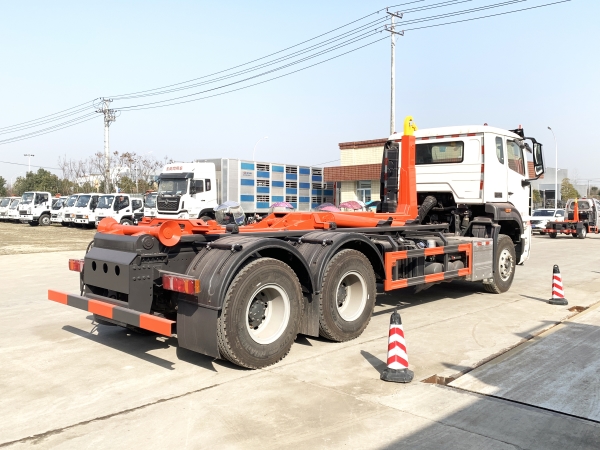 車廂可卸載式垃圾車,又稱勾臂式垃圾車、拉臂式垃圾車。該車廣泛適用與城市街道學(xué)校垃圾處理,可一車配備多個(gè)斗,各個(gè)垃圾點(diǎn)放置多個(gè),帶自卸功能,液壓操作,方便傾倒。在平日里可將車載垃圾箱放置到各個(gè)垃圾收集站,待垃圾收集滿后,該車可直接開赴至垃圾站,通過液壓系統(tǒng)的操控,可將垃圾車后座上加裝的勾臂放下,掛住站內(nèi)垃圾箱前端的連接點(diǎn),將垃圾箱拉至車體的后座上,此時(shí)即可啟動(dòng)車輛,將垃圾運(yùn)送至垃圾處理站內(nèi),進(jìn)行自卸式傾倒。該車主要的優(yōu)點(diǎn)就是可一車配多斗,一輛車就可以維持?jǐn)?shù)個(gè)垃圾收集站的運(yùn)轉(zhuǎn),效率高,且箱體為密封式設(shè)計(jì),不會(huì)造成二次污染。
