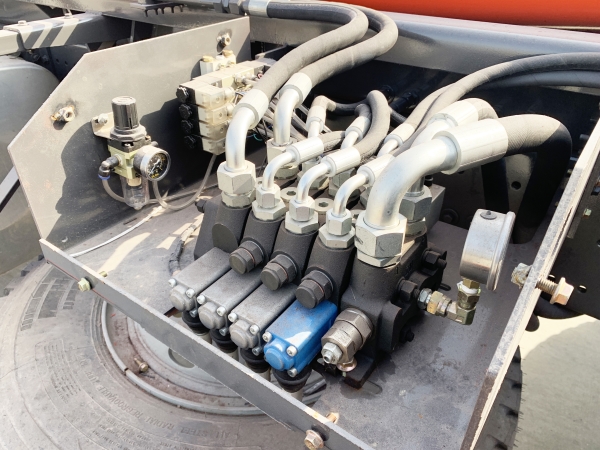 ABS型號(hào):446 004 6300或EBS3;ABS生產(chǎn)企業(yè):威伯科汽車控制系統(tǒng)(中國)有限公司;安裝有具有衛(wèi)星定位功能的行駛記錄儀;隨底盤選裝不裝遮陽罩,選裝車道偏離報(bào)警和車輛前向碰撞預(yù)警系統(tǒng),選裝油浴式空濾器,選裝四方位攝像系統(tǒng),選裝晝間行駛燈,選裝保險(xiǎn)杠外觀,選裝高位保險(xiǎn)杠,選裝踏步,選裝前脫鉤,選裝消聲器,選裝前面罩,選裝踏步和側(cè)翼子板配色,選裝A柱罩配色;選裝電瓶,儲(chǔ)氣罐,尿素盒位置布局;隨底盤選裝限速裝置,限速(km/h):89;僅選用軸距4325+1350(mm);僅選用發(fā)動(dòng)機(jī)MC07.27-60、MC07.31-60、MC07.29-60、WP8.350E61、WP9H350E62、WP10H400E62發(fā)動(dòng)機(jī)對(duì)應(yīng)的油耗申報(bào)值均為32.0L/100km;側(cè),后防護(hù)均采用材料Q235,連接方式為焊接加螺栓連接,后部防護(hù)斷面尺寸(mm):120×60,離地高度480mm;專用功能及裝置:主要專用裝置為勾臂;用于垃圾的收集清運(yùn);選裝勾臂結(jié)構(gòu),該車型可選裝ETC車載裝置.