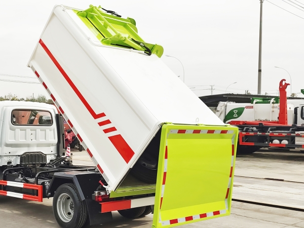 自裝卸式垃圾車是收集、中轉(zhuǎn)清理運輸垃圾,避免二次污染的新型環(huán)衛(wèi)車輛,其主要特點是垃圾收集方式簡便、高效、環(huán)保性好,整車利用效率高,廣泛適用于環(huán)衛(wèi)、市政、物業(yè)小區(qū)、垃圾多而集中的居民區(qū)、城市街道垃圾處理,均具有密封自卸功能,液壓操作,傾卸垃圾方便。 在底盤的基礎(chǔ)上,加裝垃圾箱體、連接附件、防護欄及液壓系統(tǒng)等裝置。具有操作安全、使用性能穩(wěn)定、返修率低、售后服務(wù)及時周到等特點。本產(chǎn)品主要用于收集與轉(zhuǎn)運城市住宅小區(qū)、鄉(xiāng)鎮(zhèn)街道等產(chǎn)生的生活垃圾。整車小巧靈活,行動方便,適應人流密集的商業(yè)區(qū)域和道路交通情況較差的城鄉(xiāng)地區(qū)。本車配有側(cè)掛桶進料機構(gòu),在翻桶處操作,可與120L/240L標準塑料桶對接。整車具有自卸功能,卸料方便。