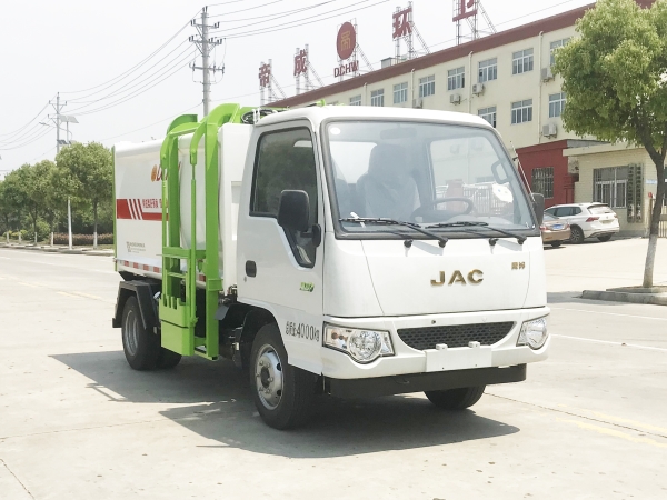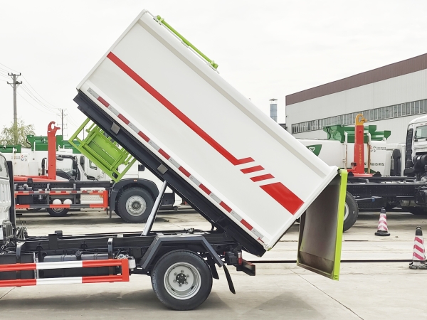 自裝卸式垃圾車是收集、中轉(zhuǎn)清理運(yùn)輸垃圾,避免二次污染的新型環(huán)衛(wèi)車輛,其主要特點(diǎn)是垃圾收集方式簡便、高效、環(huán)保性好,整車?yán)眯矢?,廣泛適用于環(huán)衛(wèi)、市政、物業(yè)小區(qū)、垃圾多而集中的居民區(qū)、城市街道垃圾處理,均具有密封自卸功能,液壓操作,傾卸垃圾方便。 在底盤的基礎(chǔ)上,加裝垃圾箱體、連接附件、防護(hù)欄及液壓系統(tǒng)等裝置。具有操作安全、使用性能穩(wěn)定、返修率低、售后服務(wù)及時(shí)周到等特點(diǎn)。本產(chǎn)品主要用于收集與轉(zhuǎn)運(yùn)城市住宅小區(qū)、鄉(xiāng)鎮(zhèn)街道等產(chǎn)生的生活垃圾。整車小巧靈活,行動(dòng)方便,適應(yīng)人流密集的商業(yè)區(qū)域和道路交通情況較差的城鄉(xiāng)地區(qū)。本車配有側(cè)掛桶進(jìn)料機(jī)構(gòu),在翻桶處操作,可與120L/240L標(biāo)準(zhǔn)塑料桶對(duì)接。整車具有自卸功能,卸料方便。